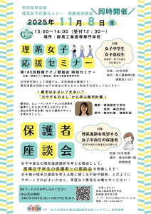 理系女子応援セミナー・保護者座談会 開催のお知らせ
