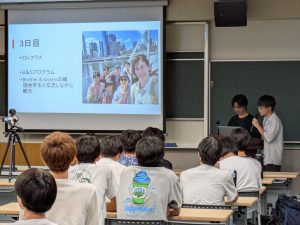 この報告会は、海外語学研修に参加及びトビタテ!留学JAPANにより留学した学生に研修等の様子を語ってもらうために、国際交流室が企画したものです。