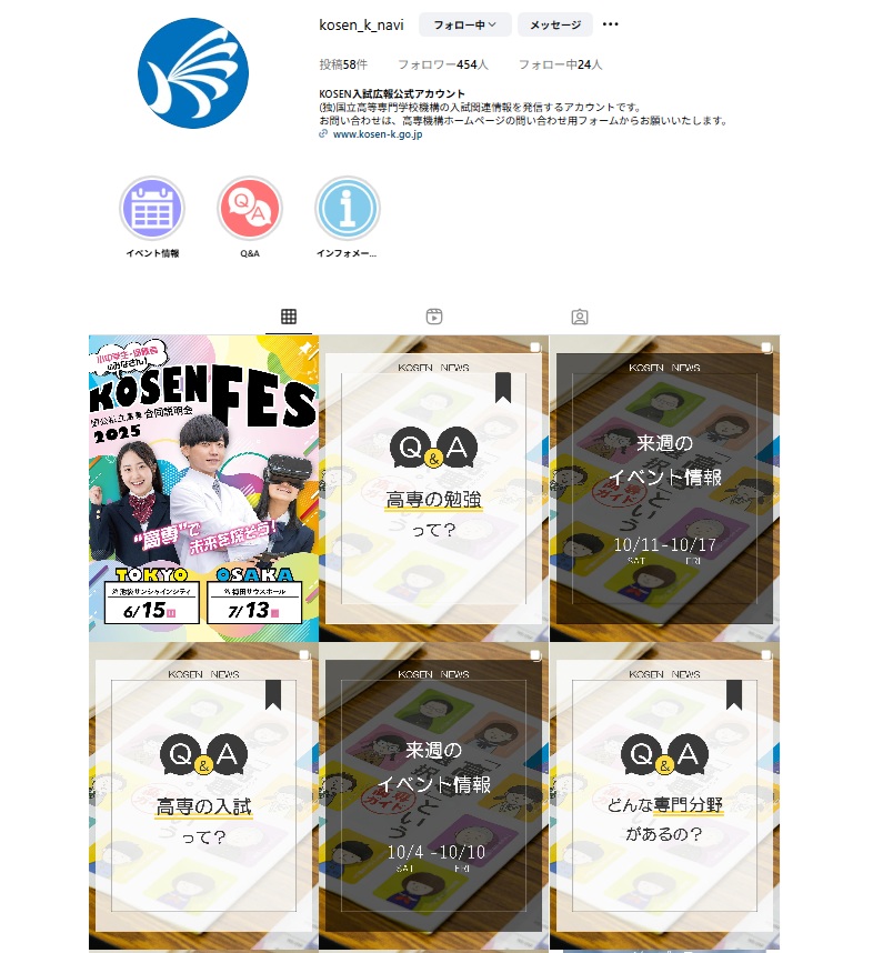 国立高等専門学校機構の入試広報用Instagramでは、全国の国立高専で開催される学校見学会や体験授業などのイベント情報を1週間ごとに紹介しています。群馬高専のイベント情報もチェックできますので、受験生や保護者の方々は積極的にご活用ください!