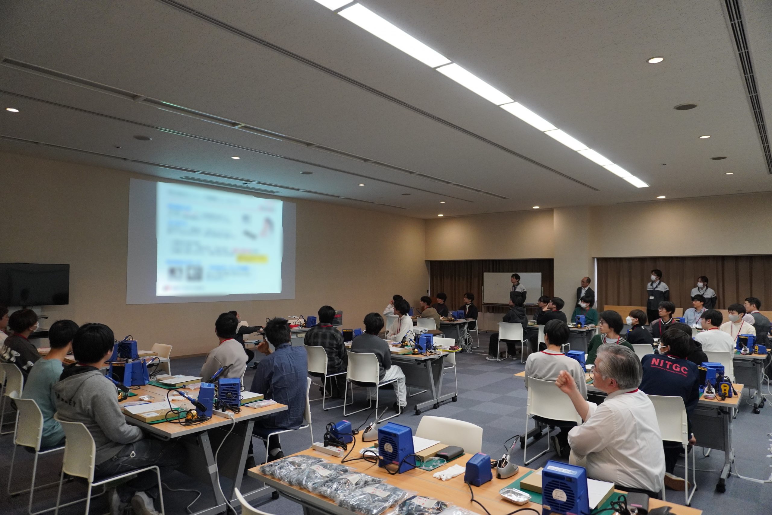 午後は、日清紡マイクロデバイス株式会社様が提供する教材(ヘッドホンアンプキット)を用いた作製実習を行いました。学生は半田ごてを使って実際にヘッドホンアンプを組み立てながら、音を増幅する回路の仕組みについて学びました。実習では、アンプキットのオペアンプ部分(音の増幅を担う集積回路部分)を差し替えることで、使用する集積回路の違いによる音質の変化を比較試聴しました。集積回路の違いにより、音の解像度や定位、帯域の広がりが変化することを体感し、集積回路の細かな設計や作り込みの差が製品性能に大きく影響することを実感しました。