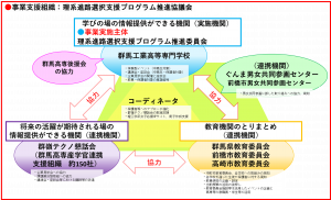 本プログラム「G-STEM~ぐんま女子中高生理系進路選択への追い風プロジェクト~」及び各企画の円滑な実施のために、群馬高専を中心に地域の関係機関が一体となって連携を図っていくことを目指します。本プログラムを推進し、本協議会で連携して活動を行うことを通して、本プログラム終了後においても相互に連携を図っていける関係性の構築を目指します。