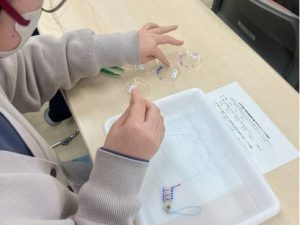 ビーズと針金でDNAの構造模型を作製しますので、細かい作業になります。