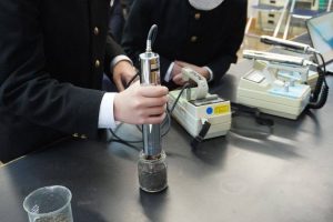 最後にガイガーカウンターを使い、中学校の校庭や高専の土の放射線の線量を実際に測定しました。